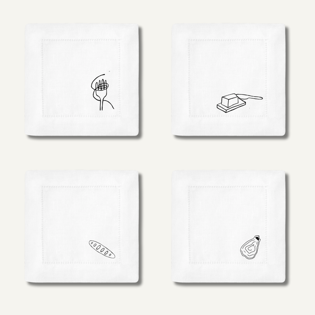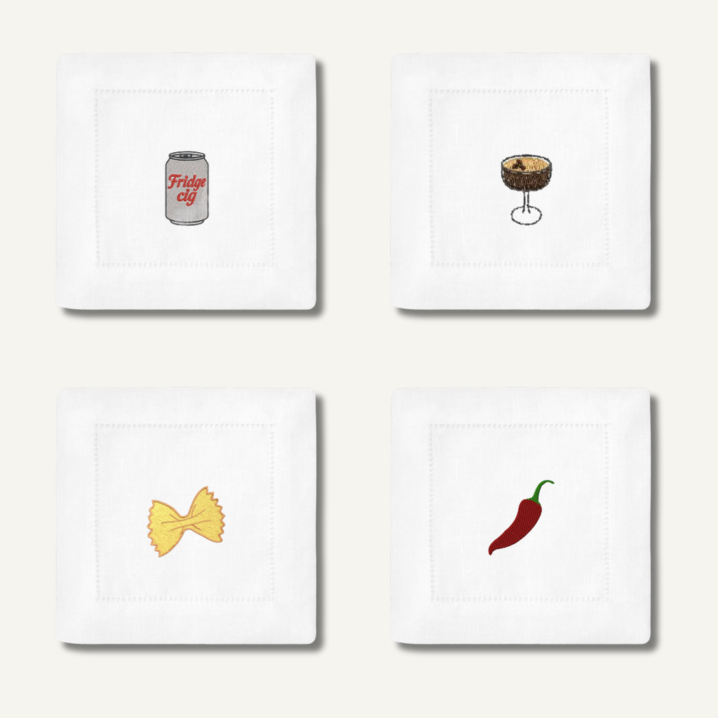 Create your perfect set of cocktail napkins to gift or keep for your own home bar! Choose from our selection of hand drawn and classic icons.
