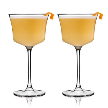Perfect for small drinks with a lot of flavor, these sour glasses are an angled cousin of the coupe glass. The stemmed design and sparkling crystal make it an elegant way to enjoy a Whiskey Sour, Amaretto Sour, or any cocktail served up.