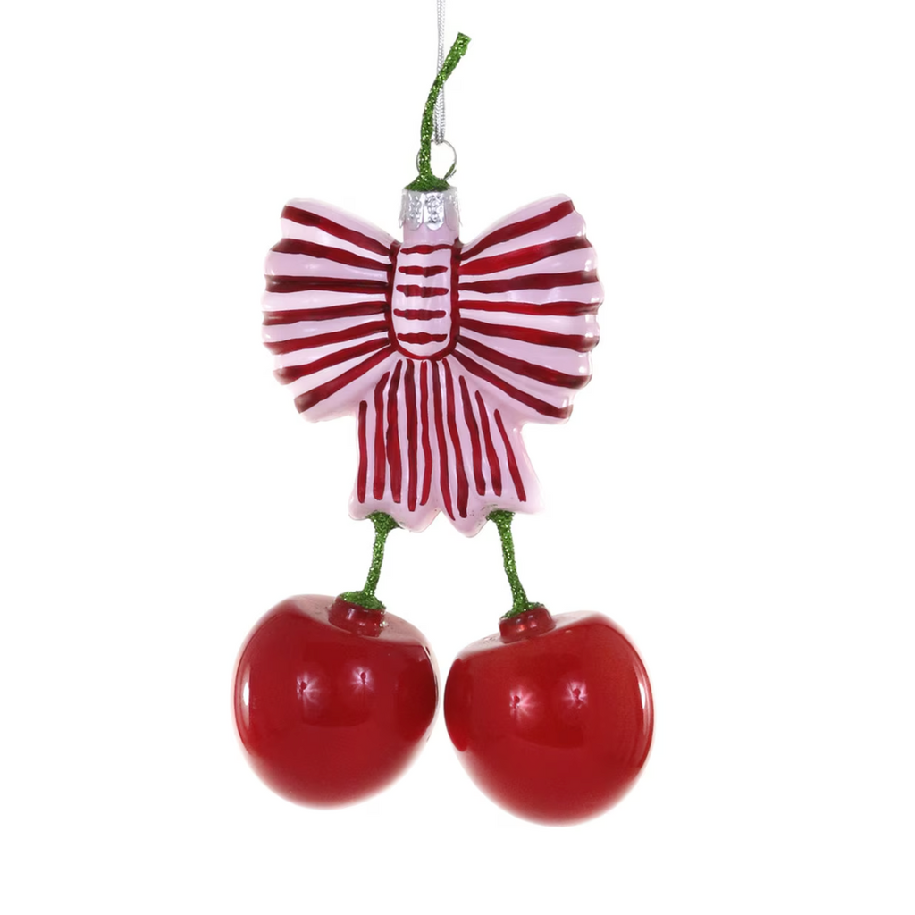 Deck your tree with a burst of fruity fun! This charming cherries ornament brings a playful, kitschy twist to your holiday décor. Complete with a cheerful bow, it's the perfect quirky addition for anyone who loves retro charm and unexpected whimsy. A delightful conversation starter that celebrates the lighter side of seasonal style.