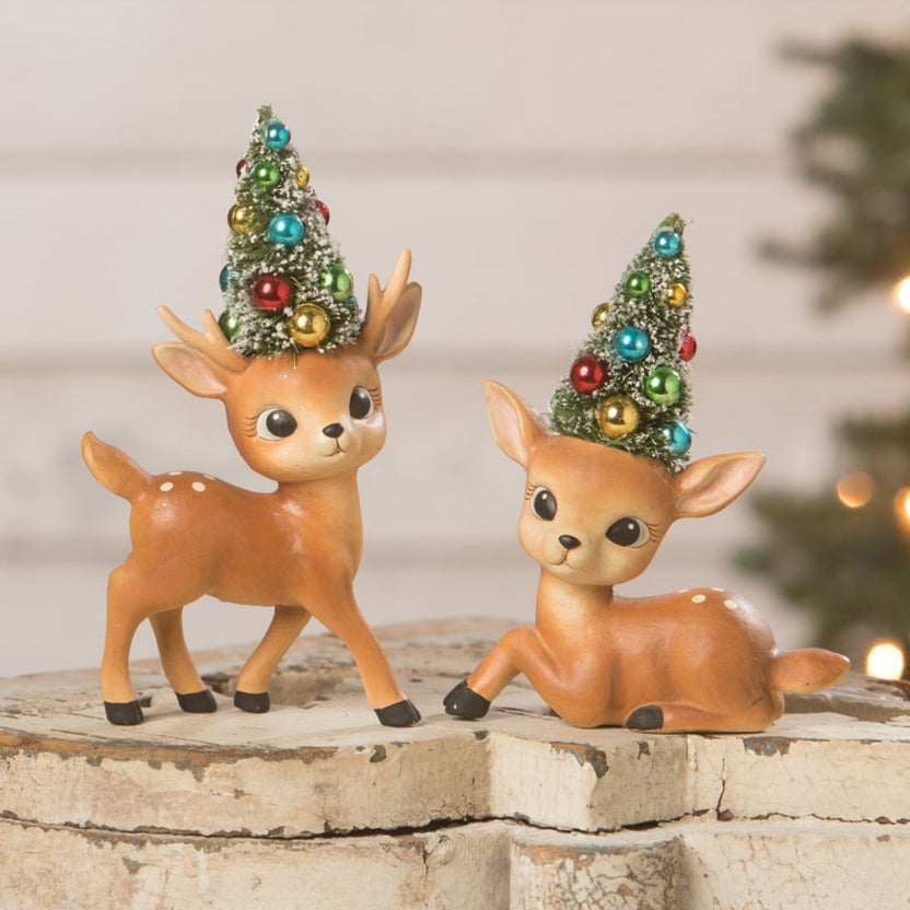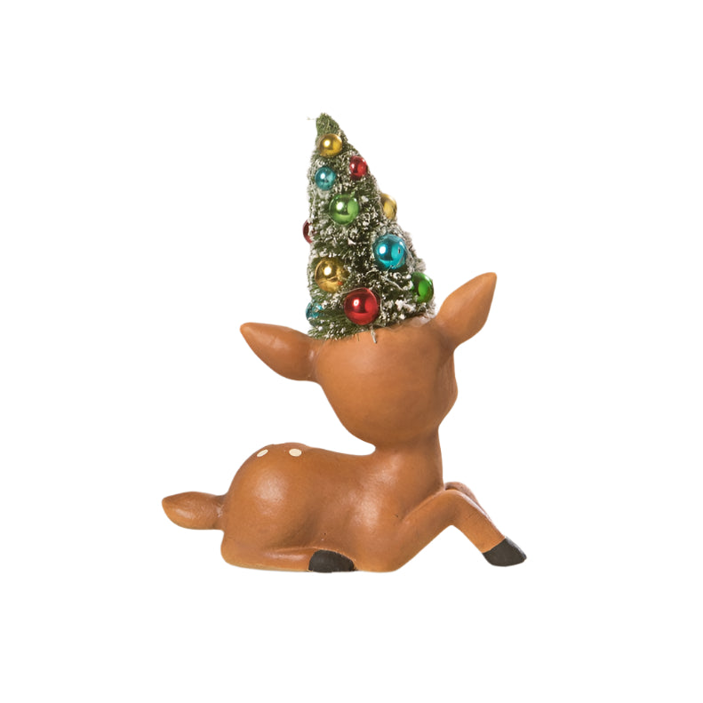 This resting reindeer with a bottle brush tree on it's head is sure to make your Christmas guests feel Merry and Bright!