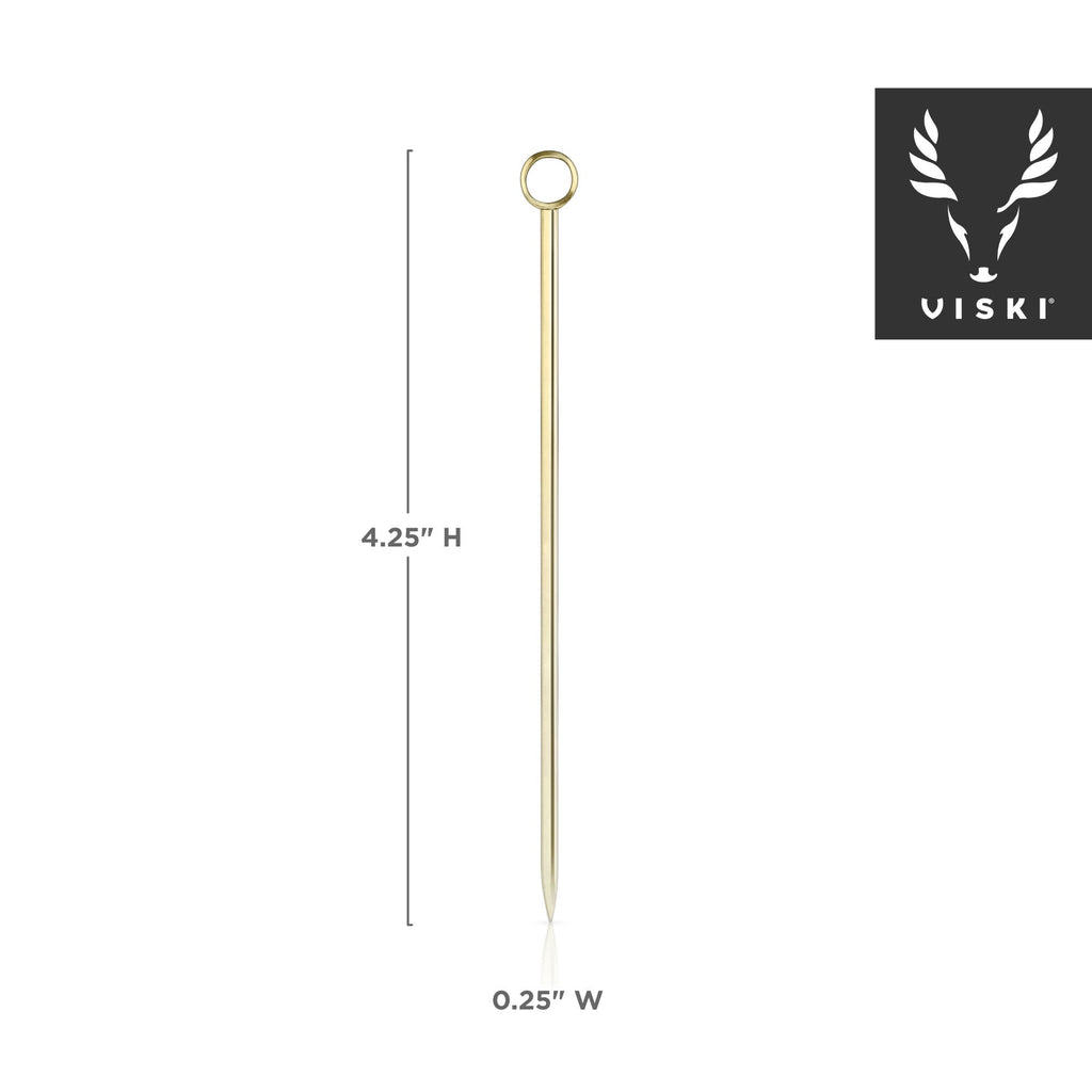 Pick your poison. Each cocktail pick in our classic set of six is finished with a small steel ring, ideal for propping an olive in your martini or a brandied cherry in your Manhattan.
