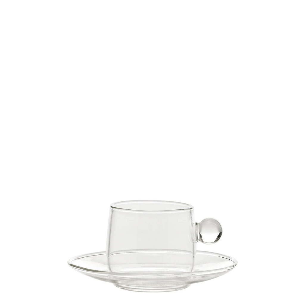 Elevate your espresso ritual with the Bilia Espresso Cup & Saucer by Zafferano, a beautifully handcrafted piece that brings Italian artistry and playful elegance to every sip. Designed by Federico De Majo and crafted from durable borosilicate glass, this charming cup and saucer combo stands 2.05″ tall with a 2.35″ diameter and holds 4 oz — the perfect size for a classic espresso. Each piece is dishwasher-safe for modern convenience and features a signature colored orb detail, combining whimsy with sophistication to enhance your daily coffee experience.