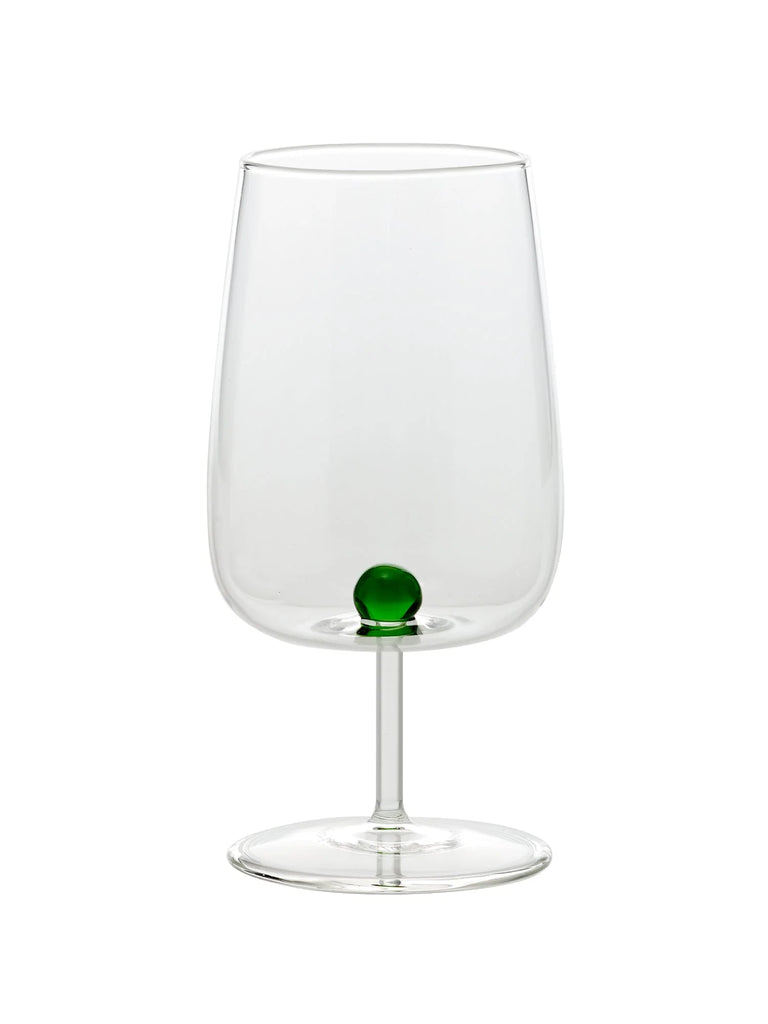 Elevate your table with the Bilia Goblet Set of 6 by Zafferano, a stunning blend of Italian design and everyday elegance. Handcrafted by designer Federico De Majo from durable borosilicate glass, each goblet showcases the iconic colored sphere at the base—an artful detail that adds a playful yet refined touch to any gathering. With a 12.8 oz (38 cl) capacity, and measuring 6.3″ in height by 2.9″ in diameter, these thermal-shock-resistant glasses are both beautiful and practical. Dishwasher safe and available in vibrant monochromatic or assorted color sets, they’re perfect for dining, entertaining, or gifting.