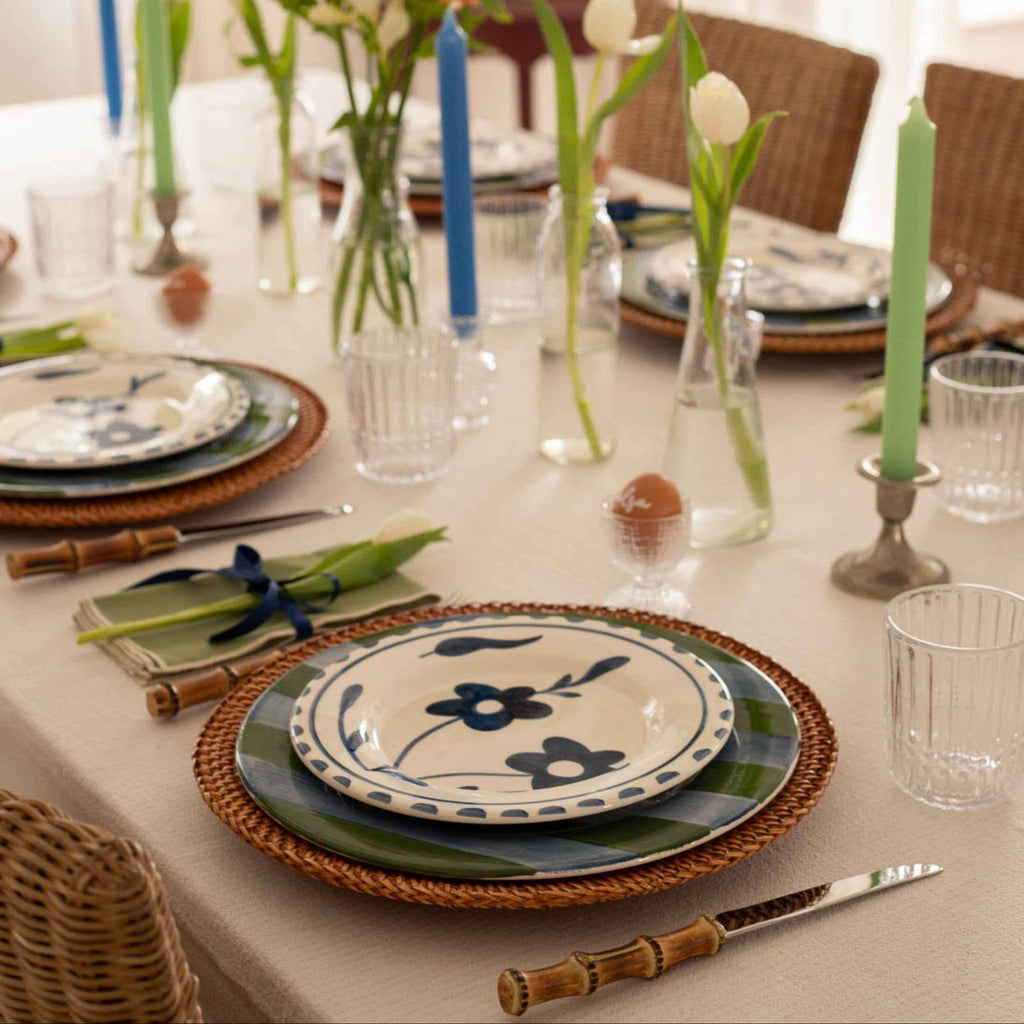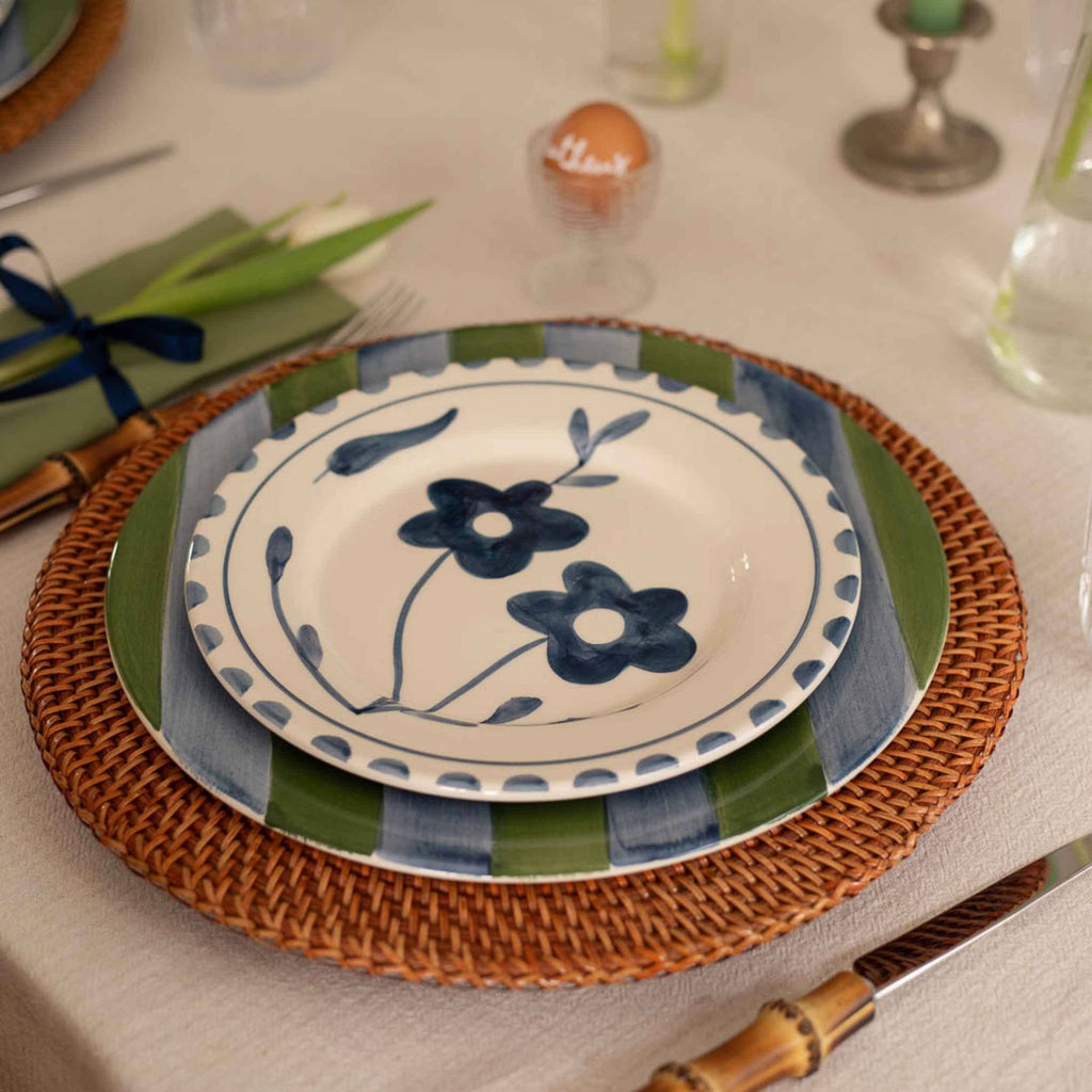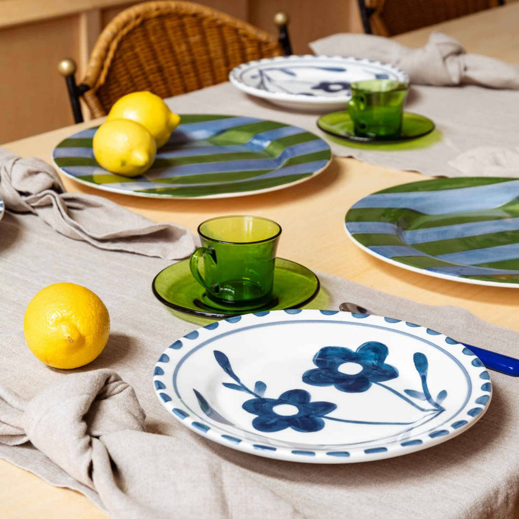This hand-painted ceramic dessert plate turns even a simple slice of cake into something extraordinary. Made in Portugal by skilled artisans, each 22 cm plate is one of a kind—no two are exactly alike. Elegant, durable, and dishwasher safe on a gentle cycle, it's perfect for entertaining or just elevating your Tuesday night treat.