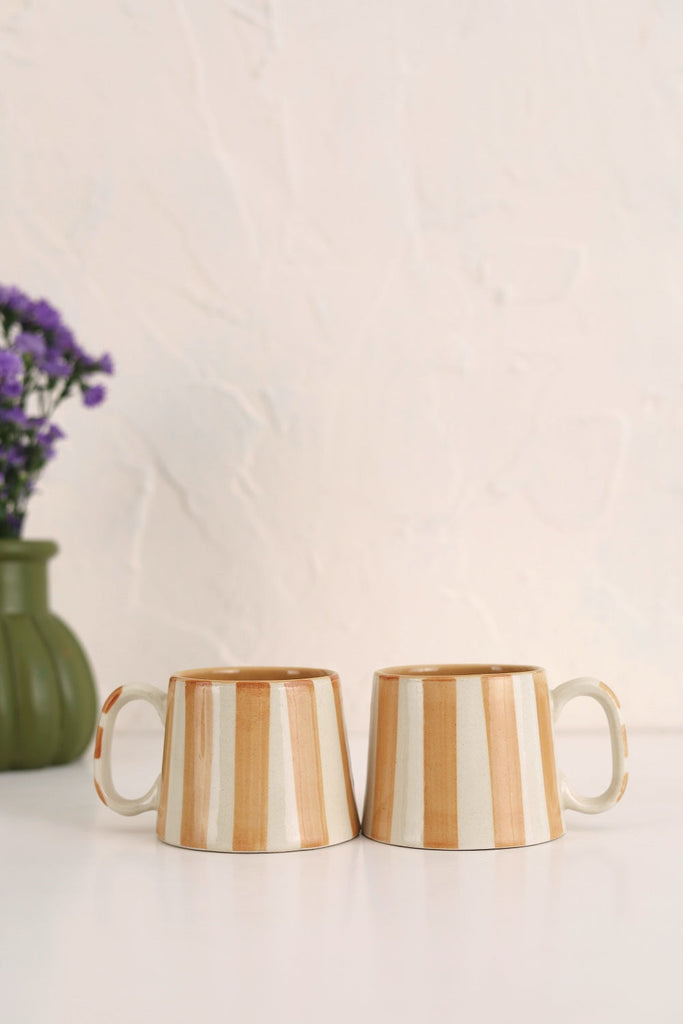 Ceramic Brown Stripe Coffee cup- 220ml (SET OF 4)