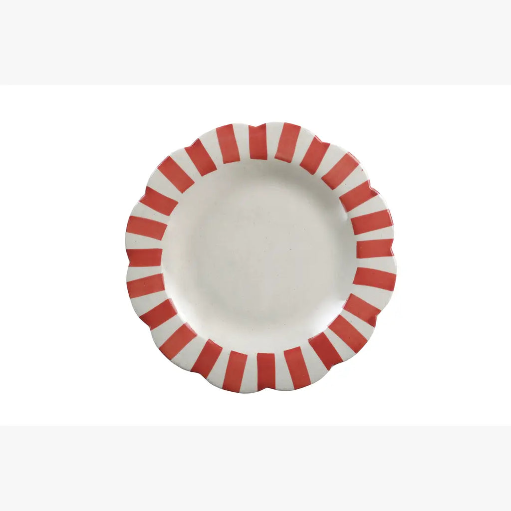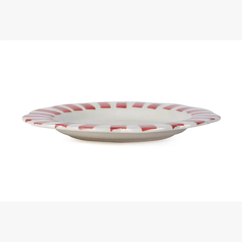Ceramic Stripe Dinner Plate, Red- 10 x 10 x 1.25 Inches