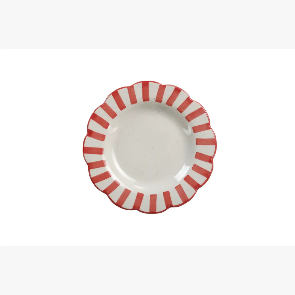 Ceramic stripe Salad Plate, 8.25x 8.25 x 1.25 Inches- Red