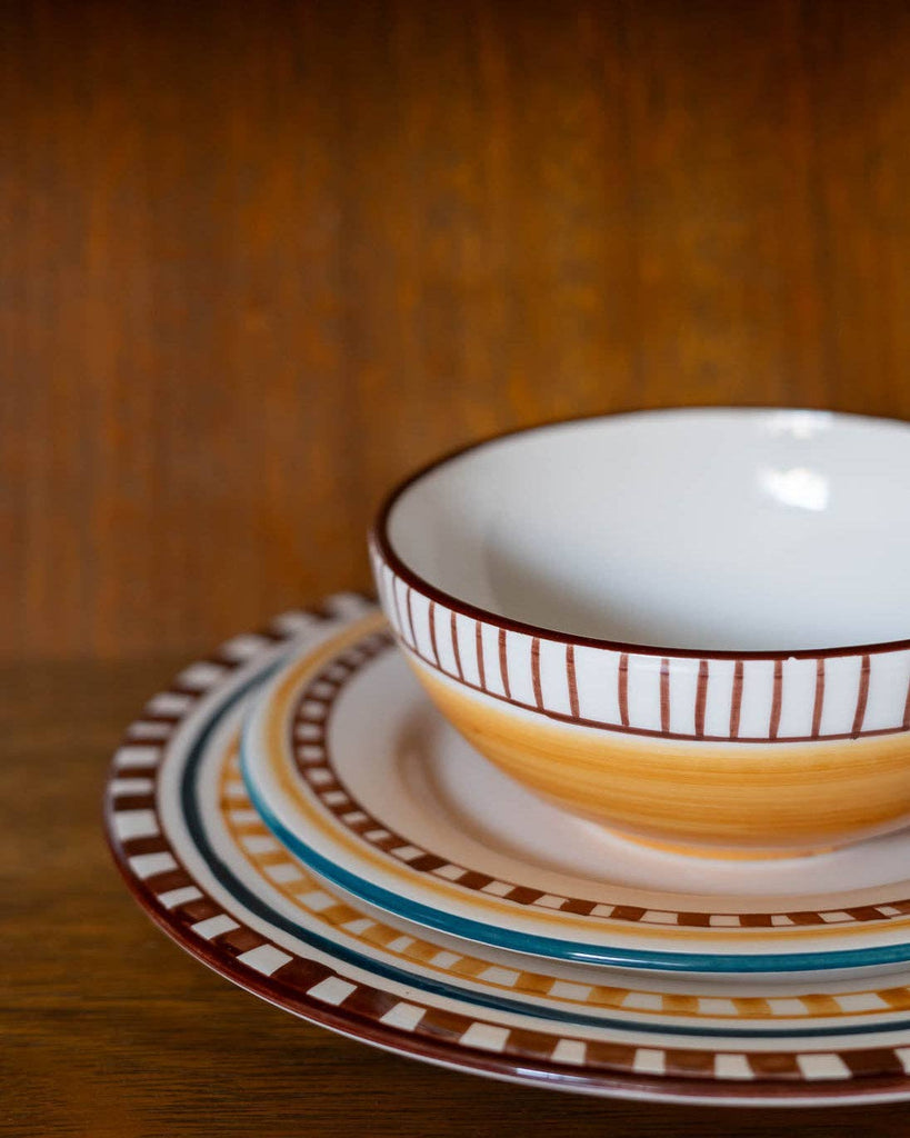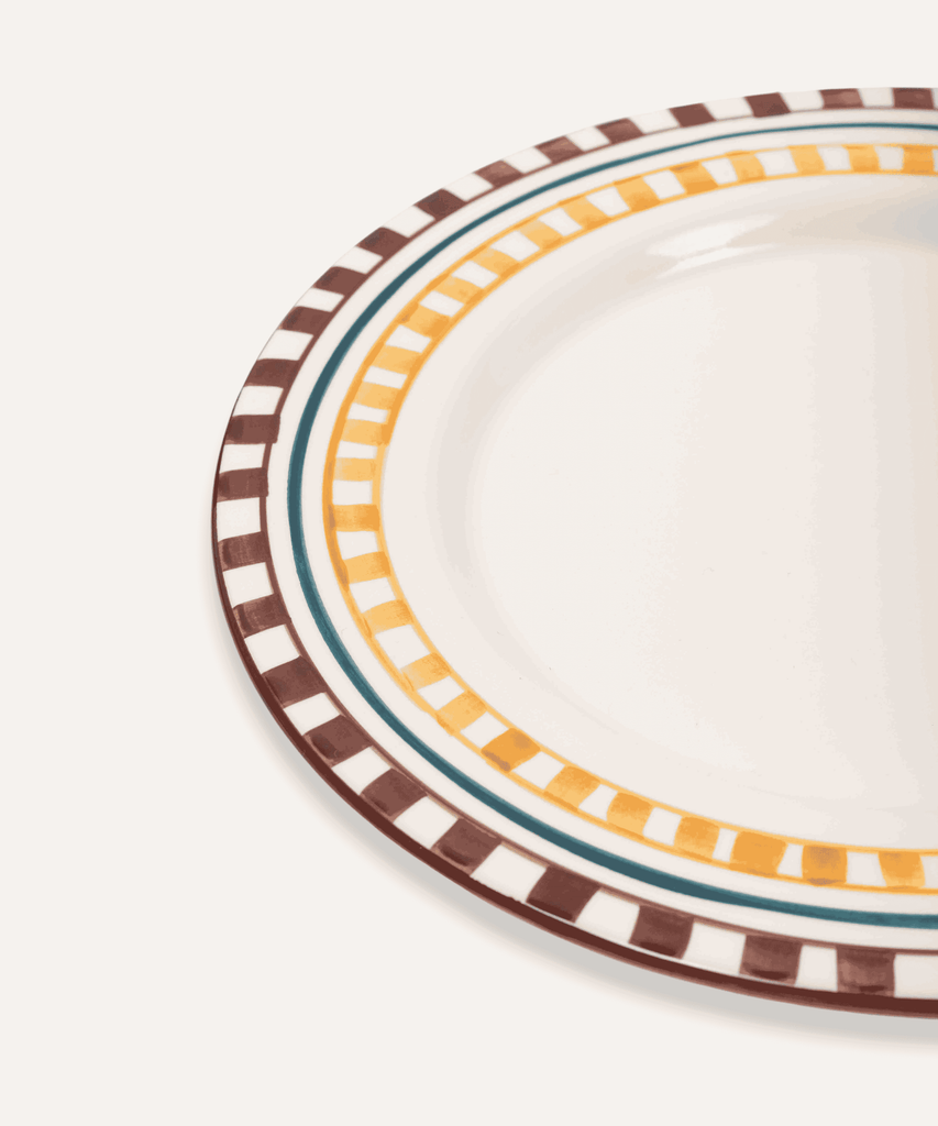 Mid-century vibes, modern-day charm. Inspired by the clean lines and timeless forms of the era, the Charlotte Dinner Plate brings effortless elegance to your table. Hand-painted in Portugal by skilled artisans, each piece strikes the perfect balance between sophistication and everyday warmth.