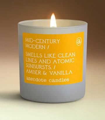 Warm and complex, Mid-century Modern's rich woody base is topped with lively floral and citrus notes. Much like the subtle pops of color that defined living room pieces of the era, hints of lavender, jasmine, and orange add contour to this candle’s inherent simplicity.